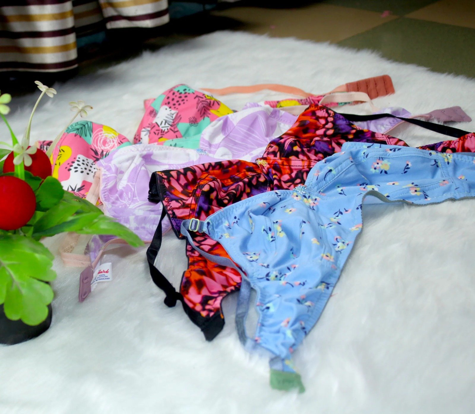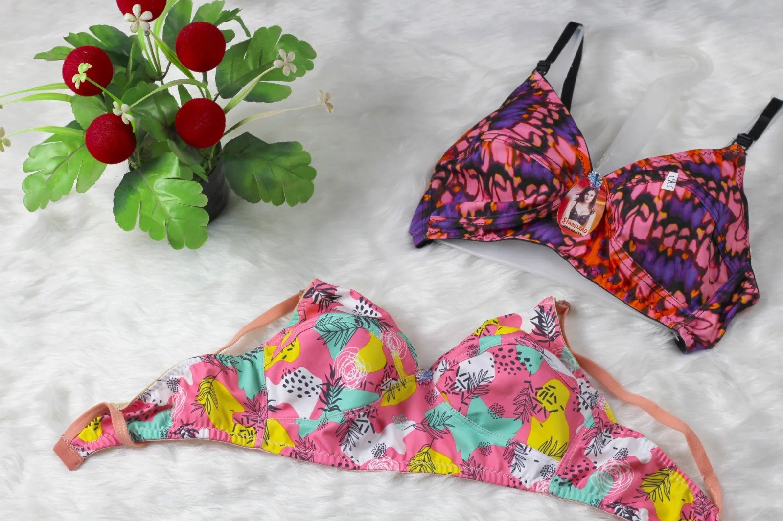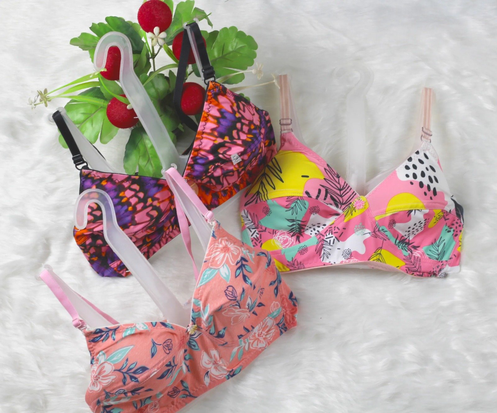 মহিলাদের এবং মেয়েদের জন্য ৪ পিস স্ট্রেচেবল প্রিন্টেড ব্রা সেট - ১ প্যান্টি সহ.. এক্সপোর্ট কোয়ালিটি, পাইকারি দাম নারী ও মেয়েদের জন্য ডিজাইন করা ৪টি স্ট্যান্ডার্ড স্ট্রেচেবল প্রিন্টেড ব্রা। • আরাম নিশ্চিত করার জন্য উচ্চমানের সুতির কাপড় দিয়ে তৈরি। • পাইকারি মূল্যে পাওয়া যায় এবং রপ্তানি মানের মান পূরণ করে। • বিভিন্ন ফ্যাশন পছন্দের নারী ও মেয়েদের জন্য আদর্শ।