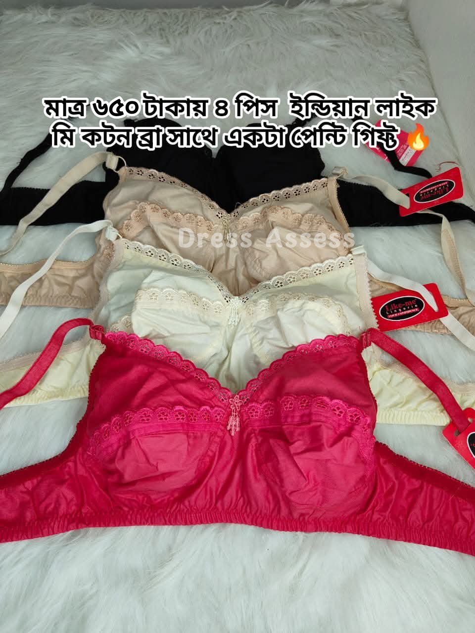 ৪ পিস লাইক-মী ব্রার লেসের কাজ করা সাথে পাচ্ছেন ১ পিস প্যান্টি ফ্রি মাত্র ৬৫০ টাকা